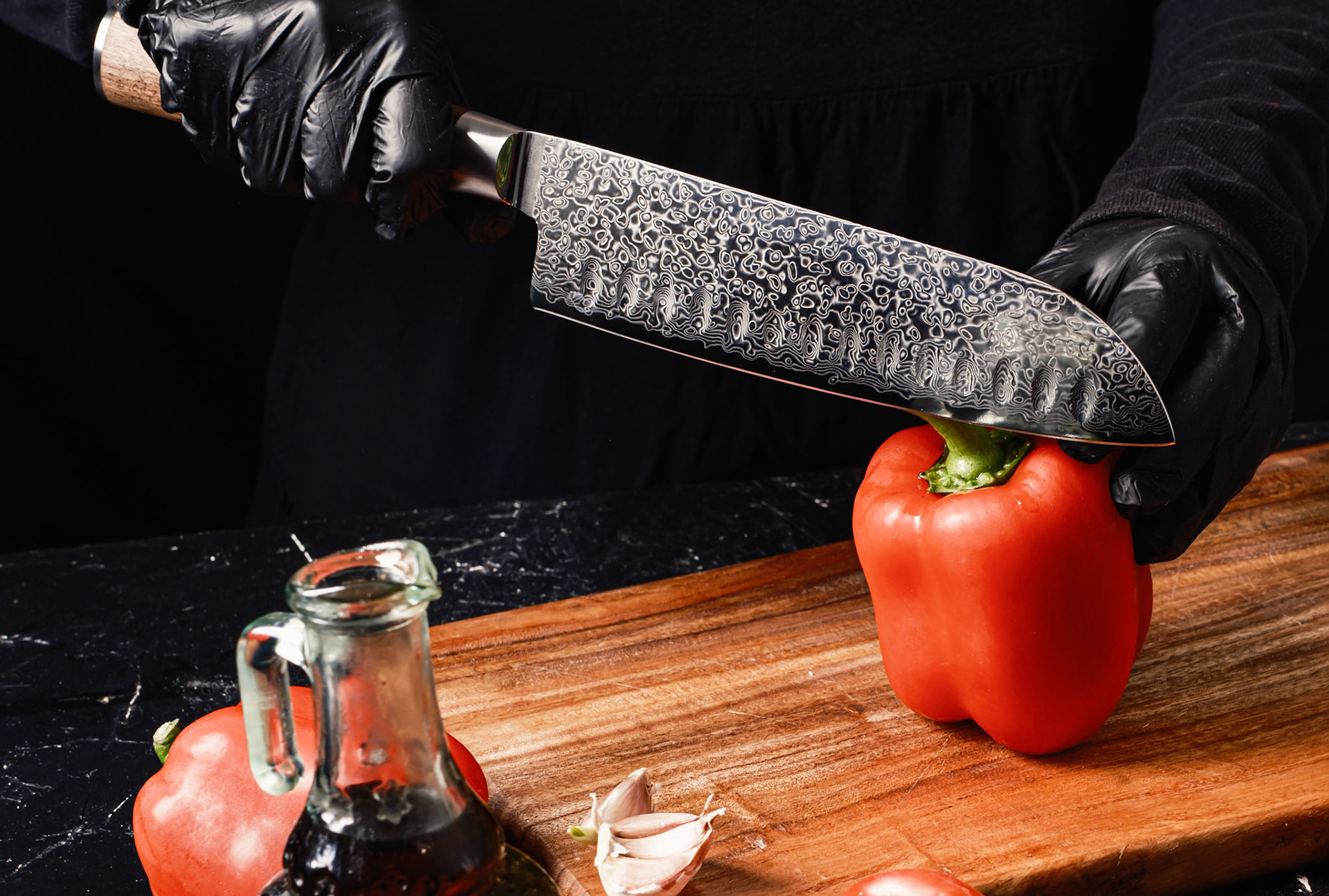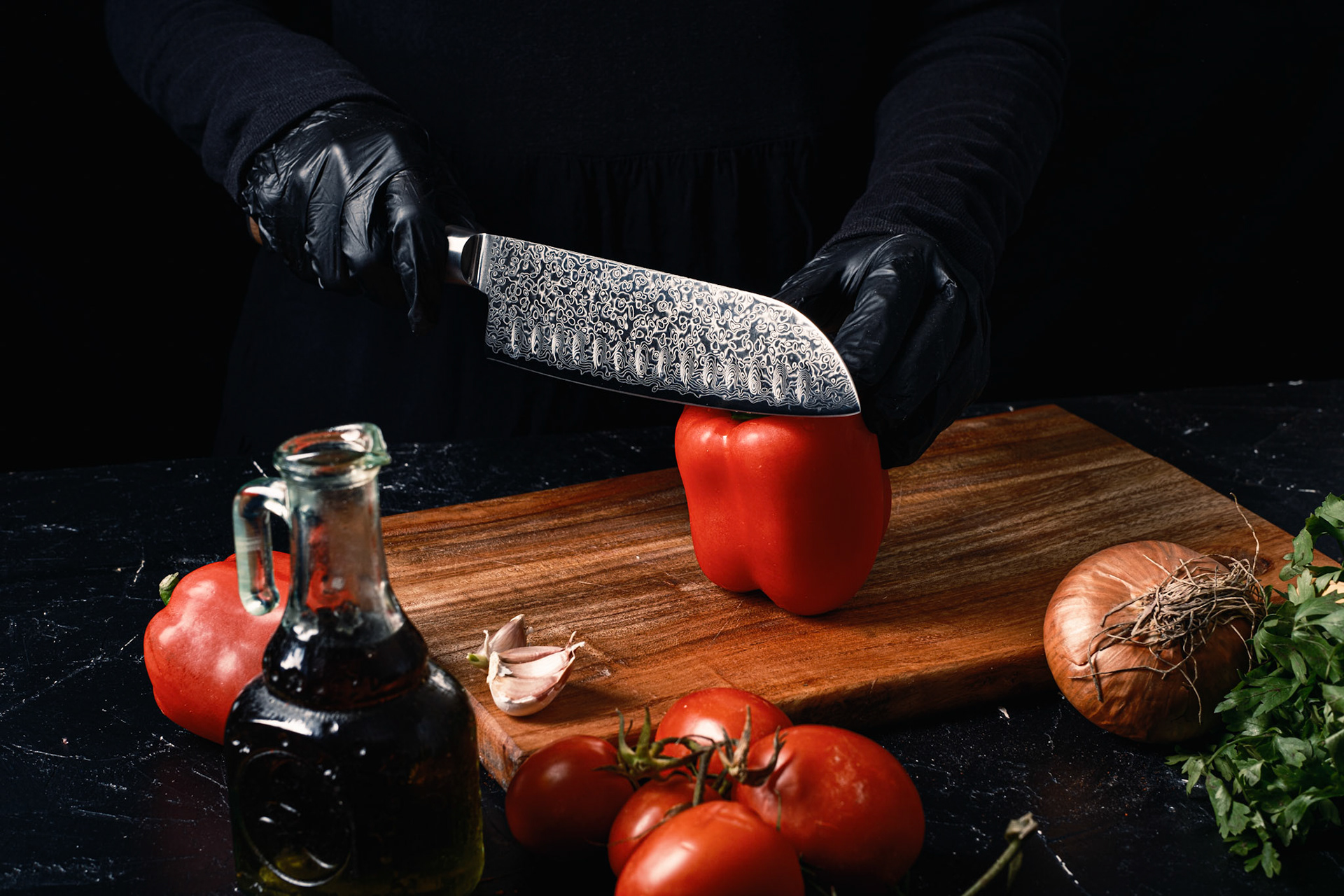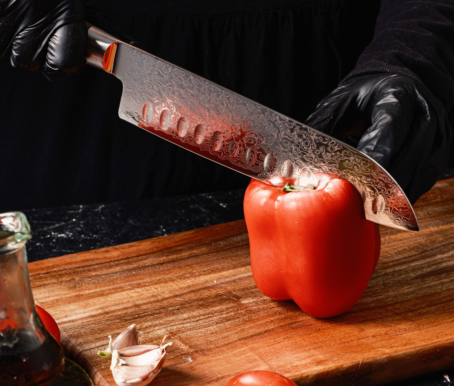 knife product photography with pepper